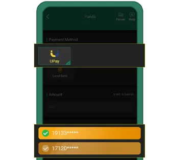 Click "UPay" and use the quick deposit button to enter the deposit amount.